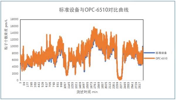 OPC-6510与标准设备测量值对比图表