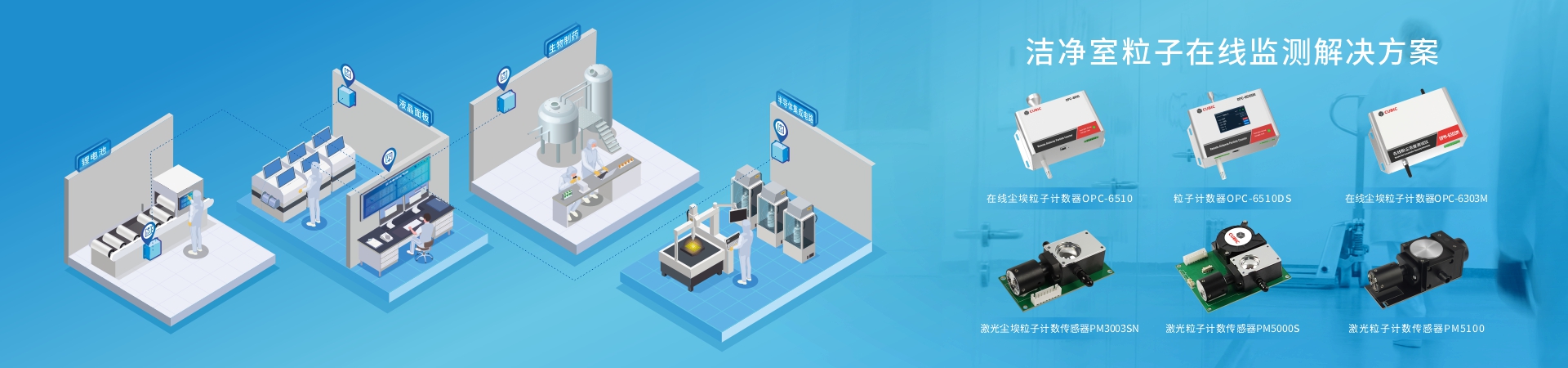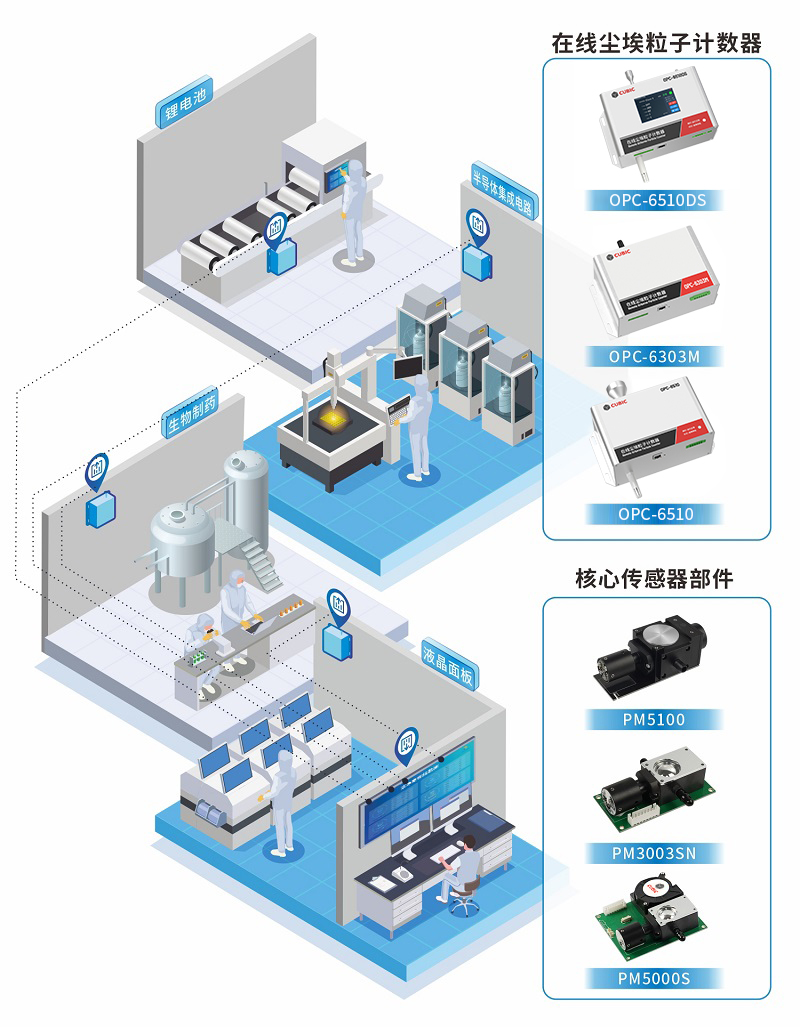 K8·凯发(中国)马竞赞助商·一触即发光电基于12年光散射技术的研究与创新,推出了在线尘埃粒子计数器OPC-6500F、OPC-6303M和OPC-6510,以及核心零部件激光尘埃粒子计数传感器PM5000S、PM3003NS和PM5100,可广泛应用于百级、千级、万级、十万级等洁净室环境。